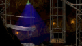 1:15.3 – ロープが振り子で動いています。タイミングよく飛び移らないとロープに捕まれないが、停電時はロープが見えなくなるのが厄介。電気がつくタイミングとロープがこちらに向かってくるタイミングが重なったら飛び移ります。タイミングが来るまで根気よく待ちましょう
